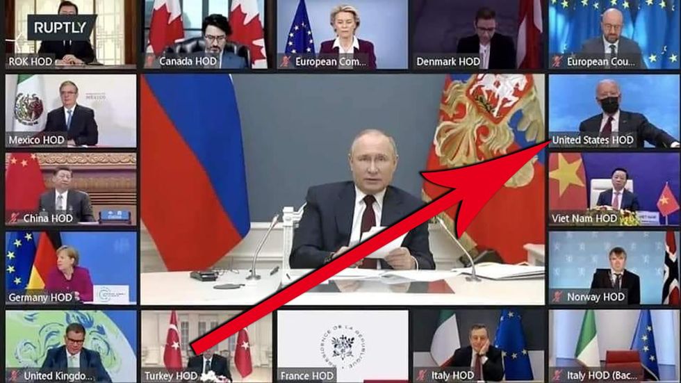I have trouble imagining that there are people around Biden who think THIS is a good look. That someone thinks this shows leadership. All of the people in this call have been dealing with the same global pandemic. They've all been following the same science. Or at the very least, the same "science." They've all gotten their shots. Yet every other world leader is on this call looking like a leader. Our leader is there looking like a buffoon.