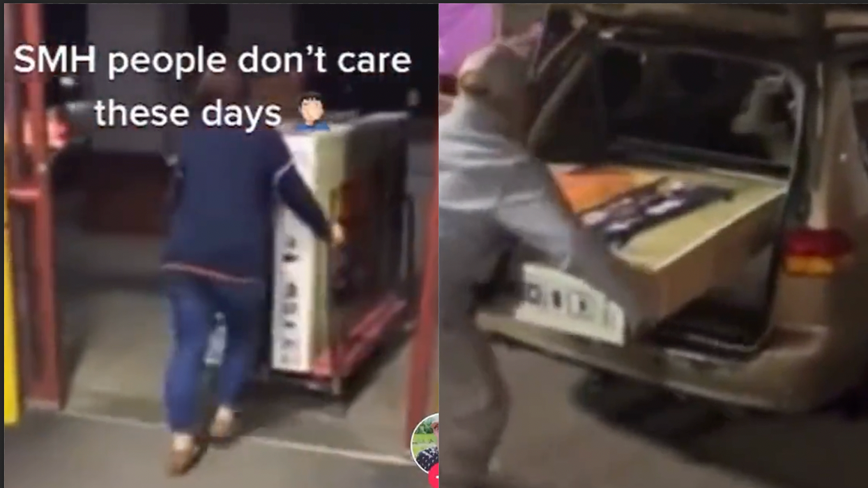 EMPLOYEE: They're trying to load the televisions in the back of a van.