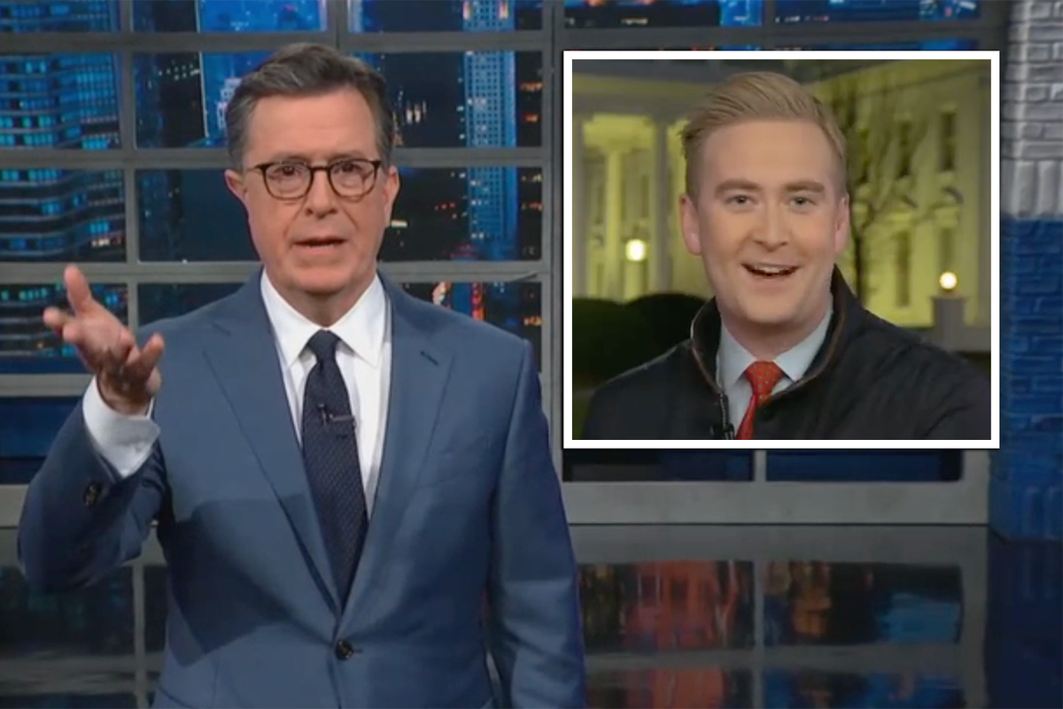 Stephen Colbert is not above selling out to the Democratic Party. He gets talking points and makes them what he considers jokes. All late-night hosts do it. He's the most brazenly douchey about it. Or is it douchely brazen? Either way, Colbert is an unfunny hack. And like most trolls, he hates DOOCY because of the way the FOX News reporter dares to ask questions of Joe Biden and the White House. So much so, Colbert called for violence.
